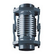 單式鉸鏈型波紋膨脹節通過其角度的變化來吸收管線、輸送通道或容器等沿其軸向方向因熱膨脹或收縮所引起的角向位移。通常兩件或三件組合使用,補償量與兩件產品間距離成正比,其優點是體積小,重量輕,產品壓力推力由鉸鏈構件承受, 角向鉸鏈波紋補償器可以補償管線在任意方向的角位移。